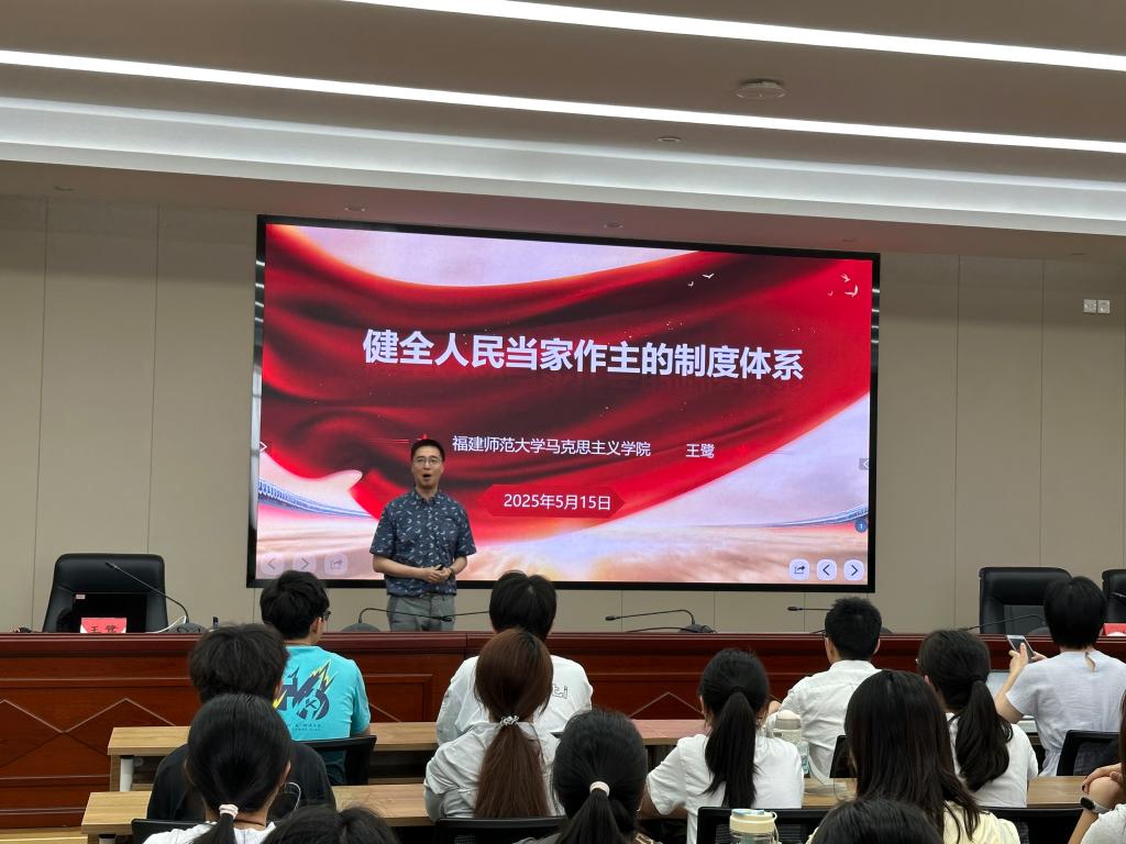為深入貫徹落實黨的二十大和二十屆三中全會精神,推動新時代思想政治理論課改革創(chuàng)新,提升全校師生對中國特色社會主義制度體系的理解,5月15日,我校邀請福建師范大學馬克思主義學院副教授王鷺在厚德樓六樓會議室作題為《健全人民當家作主的制度體系》專題講座。講座由馬克思主義學院黨總支副書記賴文金主持,馬克思主義學院全體專兼職教師、學生代表參加。