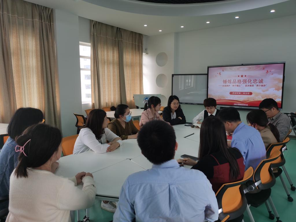 為深入學(xué)習(xí)領(lǐng)會(huì)習(xí)近平新時(shí)代中國(guó)特色社會(huì)主義思想,忠誠(chéng)擁護(hù)“兩個(gè)確立”,堅(jiān)決做到“兩個(gè)維護(hù)”,藥學(xué)院第二黨支部于2023年5月11日開展“錘煉品格強(qiáng)化忠誠(chéng)”專題學(xué)習(xí)。本次專題學(xué)習(xí)由支部書記劉丹丹主持。