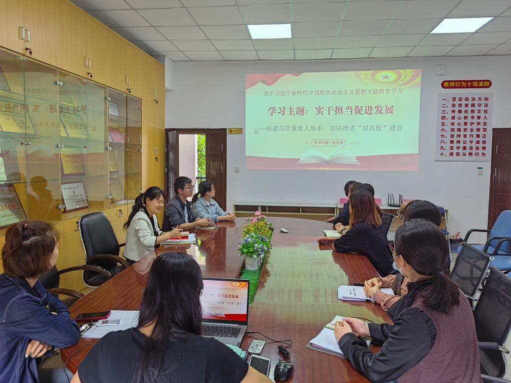 為推動(dòng)學(xué)習(xí)貫徹習(xí)近平新時(shí)代中國(guó)特色社會(huì)主義思想主題教育走深走實(shí),5月11日,藥學(xué)院第一黨支部開展“實(shí)干擔(dān)當(dāng)促進(jìn)發(fā)展”專題學(xué)習(xí),支部書記羅蘭主持。