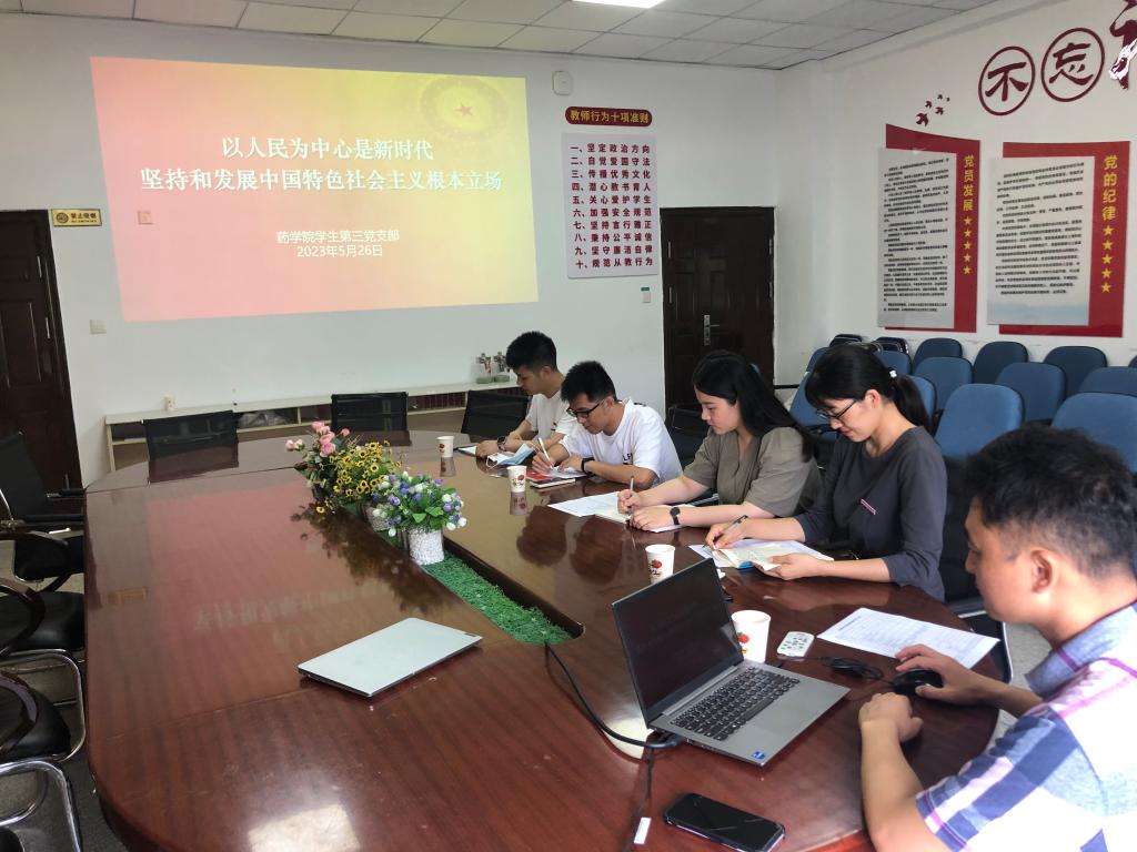 5月26日,藥學(xué)院學(xué)生第三黨支部書記陳翰在藥學(xué)院會(huì)議室開展題為《以人民為中心是新時(shí)代堅(jiān)持和發(fā)展中國(guó)特色社會(huì)主義根本立場(chǎng)》的黨課,學(xué)生第三黨支部全體教師黨員參與。