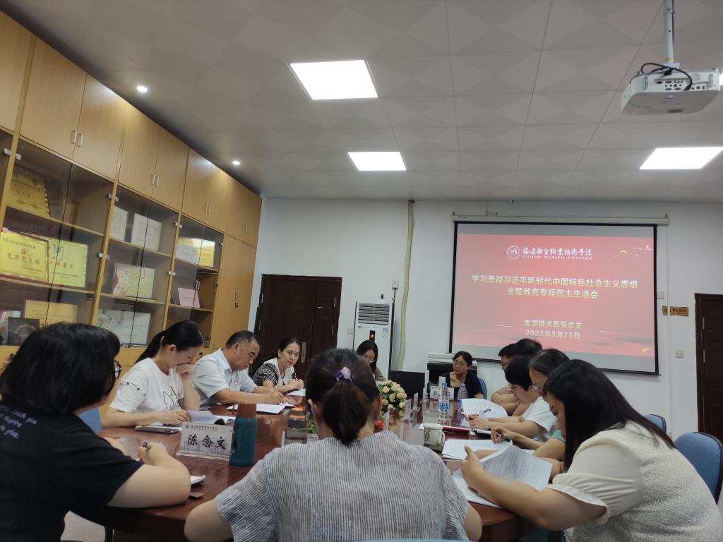 按照省委、省委教育工委和學校黨委部署要求,8月23日,醫(yī)學技術(shù)系黨總支召開學習貫徹習近平新時代中國特色社會主義思想主題教育專題民主生活會。學校主題教育協(xié)調(diào)推進三小組組長、校紀委書記游鋒到會指導并作點評。黨總支書記柯瓊鶯主持會議,黨總支委員參加會議。