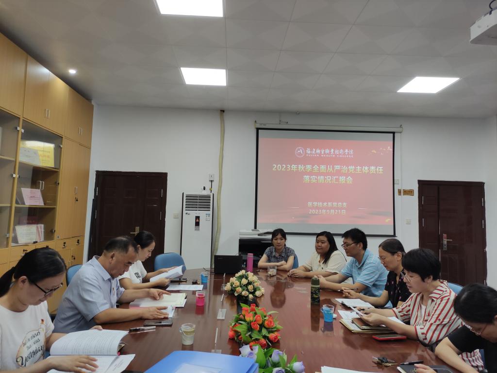 醫(yī)學(xué)技術(shù)系黨總支書記柯瓊鶯代表黨總支匯報(bào)2022年主體責(zé)任檢查發(fā)現(xiàn)問題整改落實(shí)情況、2023年全面從嚴(yán)治黨主體責(zé)任落實(shí)情況及典型經(jīng)驗(yàn)做法。