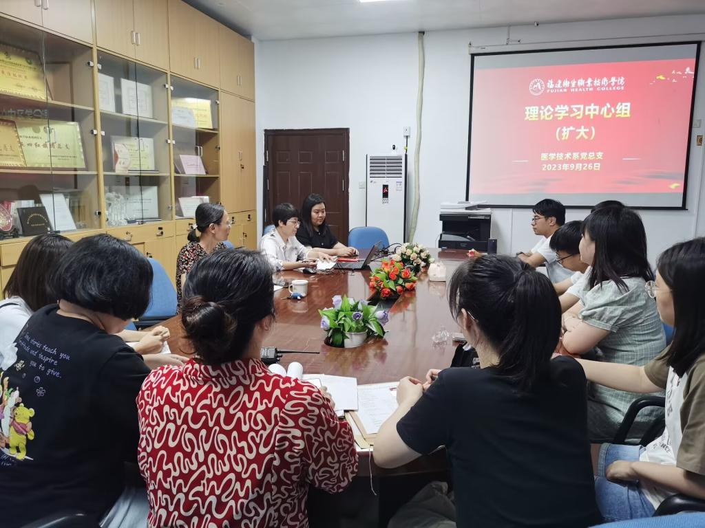 9月26日,醫(yī)學(xué)技術(shù)系黨總支書記柯瓊鶯主持召開理論學(xué)習中心組(擴大)會議,開展意識形態(tài)工作專題學(xué)習。會議主要學(xué)習習近平總書記致全國優(yōu)秀教師代表的信及全國優(yōu)秀教師代表座談會精神,傳達《關(guān)于教育系統(tǒng)學(xué)習貫徹習近平總書記教師節(jié)重要指示精神的通知》、《關(guān)于全省教育系統(tǒng)深入學(xué)習貫徹習近平總書記教師節(jié)重要指示精神的通知》、鑄牢中華民族共同體意識相關(guān)文件精神等。