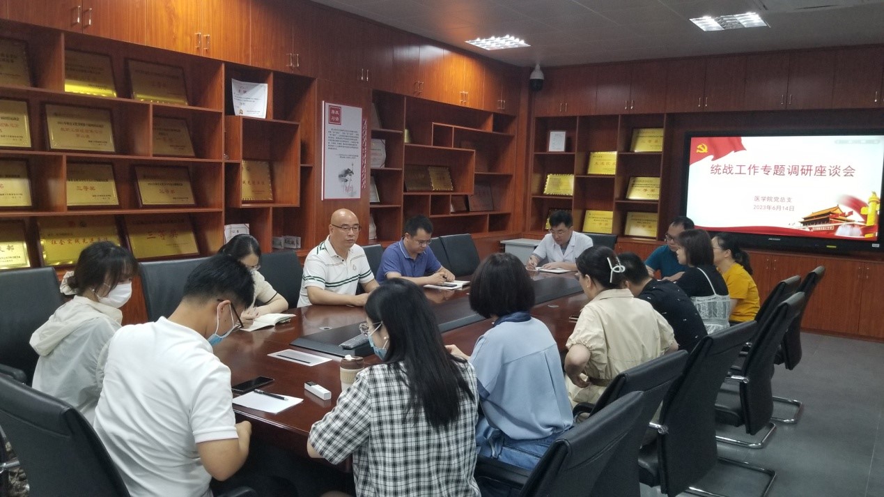 為推進(jìn)主題教育走深走實,扎實開展調(diào)查研究工作,進(jìn)一步加強(qiáng)統(tǒng)戰(zhàn)人士思想政治引領(lǐng),6月14日下午,醫(yī)學(xué)院就主題教育相關(guān)要求開展統(tǒng)戰(zhàn)工作專題調(diào)研座談會。會議由黨總支書記邱滾忠主持,黨總支及各黨支部統(tǒng)戰(zhàn)委員,學(xué)院各民主黨派教師、黨外教師代表參會。
