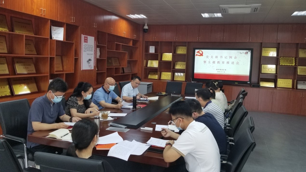 為做好學(xué)習(xí)貫徹習(xí)近平新時(shí)代中國(guó)特色社會(huì)主義思想主題教育,推進(jìn)主題教育扎實(shí)深入開(kāi)展,5月31日上午,醫(yī)學(xué)院召開(kāi)黨支部書記例會(huì)暨主題教育推進(jìn)會(huì)。會(huì)議由黨總支書記邱滾忠主持,黨總支委員、各黨支部書記、副書記等參加。
