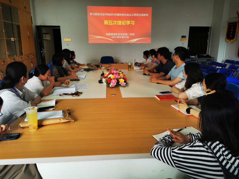 為深入開展學(xué)習(xí)貫徹習(xí)近平新時(shí)代中國特色社會(huì)主義思想主題教育走深走實(shí),堅(jiān)持讀原著學(xué)原文悟原理,6月22日,健康管理系黨總支第一支部于健康管理系會(huì)議室召開第五次專題理論學(xué)習(xí)活動(dòng)。