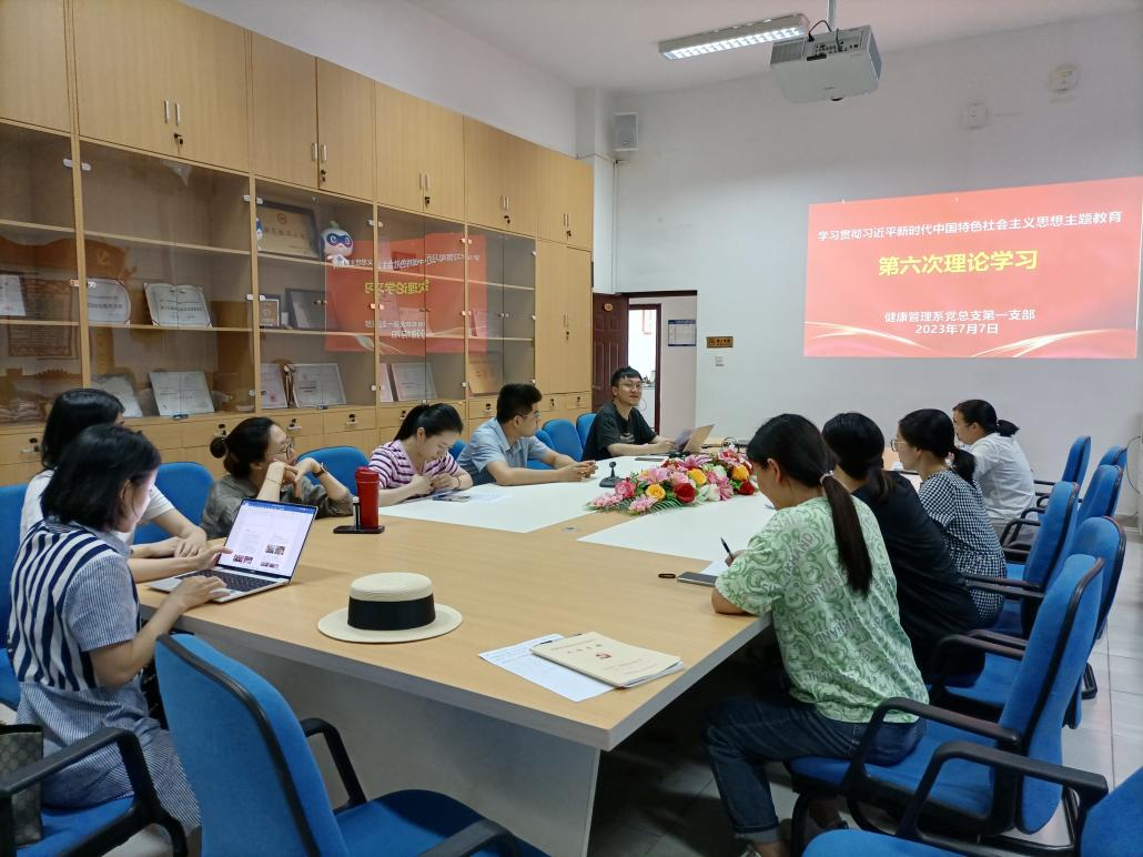 為深入開展學(xué)習(xí)貫徹習(xí)近平新時(shí)代中國特色社會(huì)主義思想主題教育走深走實(shí),堅(jiān)持讀原著學(xué)原文悟原理,7月7日,健康管理系黨總支第一支部于健康管理系會(huì)議室召開第六次專題理論學(xué)習(xí)活動(dòng)。