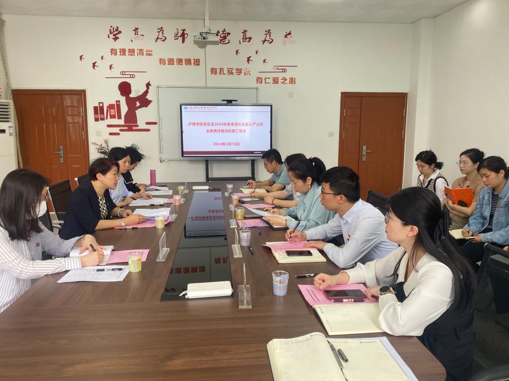 4月18日,校黨委委員、副校長朱扶蓉帶隊(duì)到護(hù)理學(xué)院開展2024年春季全面從嚴(yán)治黨主體責(zé)任落實(shí)情況的檢查。護(hù)理學(xué)院黨總支委員、各黨支部委員到場參加。