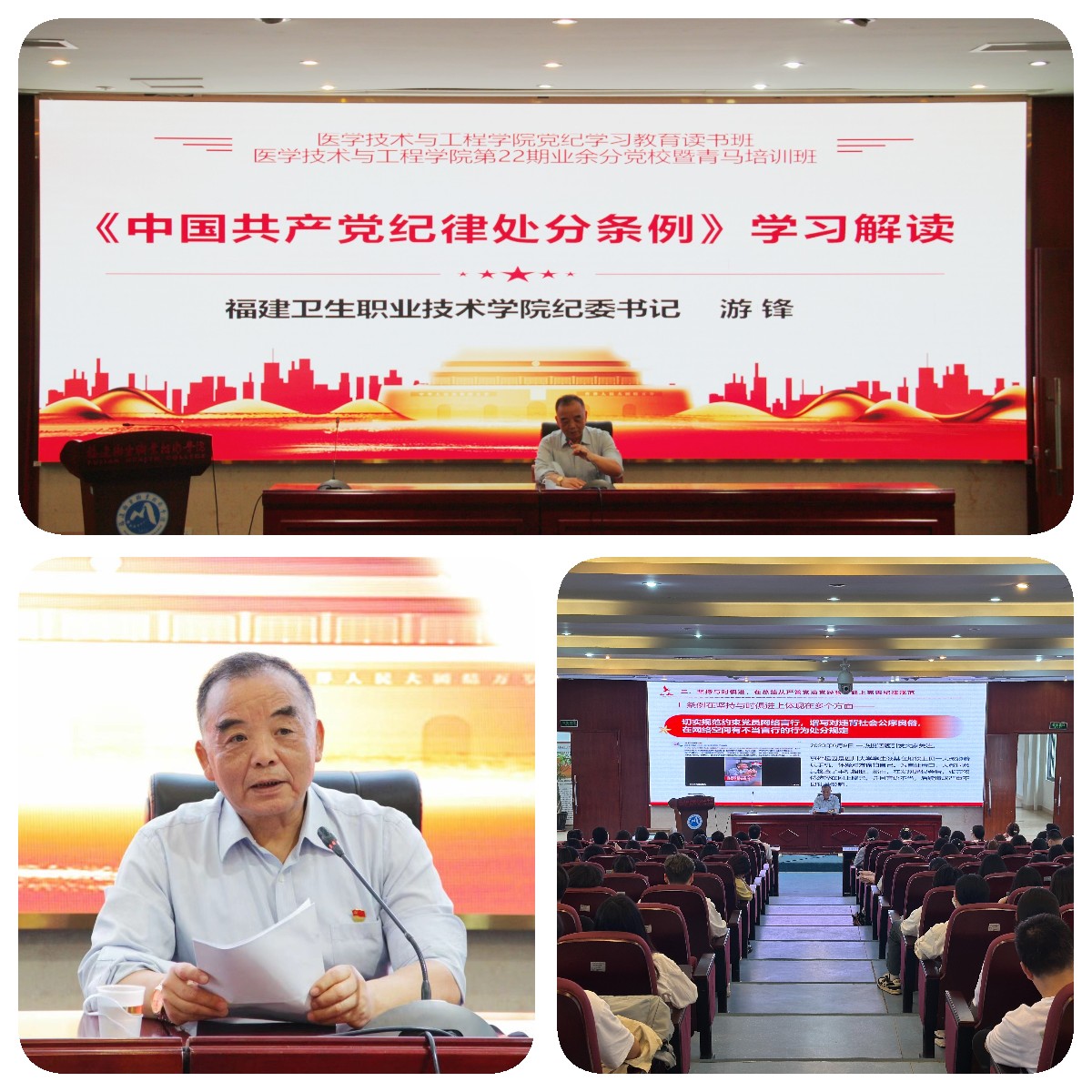 4月25日,醫(yī)學(xué)技術(shù)與工程學(xué)院開展黨紀(jì)學(xué)習(xí)教育專題黨課暨讀書班開班式。校紀(jì)委書記游鋒圍繞新修訂的《中國共產(chǎn)黨紀(jì)律處分條例》講授專題黨課。醫(yī)學(xué)技術(shù)與工程學(xué)院黨總支書記柯瓊鶯主持開班式并講話,學(xué)院黨員及入黨積極分子參加學(xué)習(xí)。