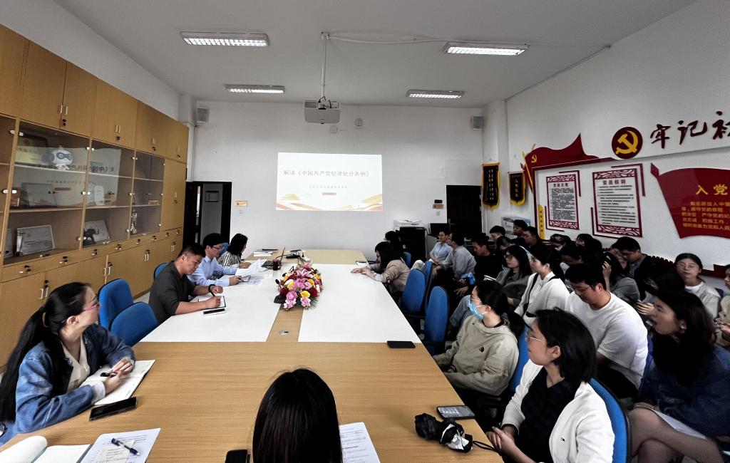 為深入學(xué)習(xí)貫徹習(xí)近平總書記關(guān)于黨紀(jì)學(xué)習(xí)教育的重要講話和重要指示精神,扎實(shí)有效開展黨紀(jì)學(xué)習(xí)教育。4月25日,學(xué)院黨總支副書記董東開展《中國共產(chǎn)黨紀(jì)律處分條例》專題黨課,學(xué)院全體教職工參會(huì)。