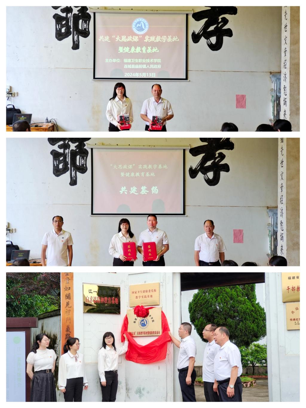 我校與連城縣廟前鎮(zhèn)人民政府、連城縣廟前鎮(zhèn)共建“大思政課”實踐教學(xué)基地暨健康教育基地簽約揭牌儀式在廟前鎮(zhèn)廟上村江一真陳列館隆重舉行,儀式由江發(fā)揚主持。