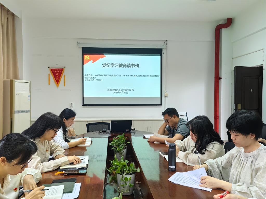 為進一步嚴(yán)明黨的組織紀(jì)律,增強黨員組織觀念,2024年5月23日,直屬馬克思主義學(xué)院黨支部黨紀(jì)學(xué)習(xí)教育讀書班在厚德樓107會議室圍繞《中國共產(chǎn)黨紀(jì)律處分條例》開展第三次集體學(xué)習(xí)活動。