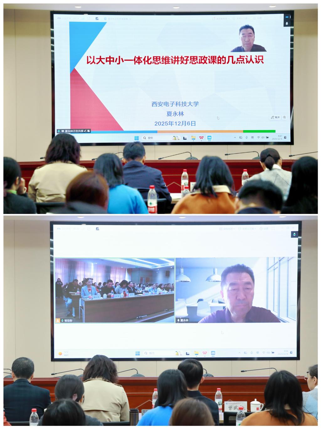 全國網(wǎng)絡(luò)教學名師、西安電子科技大學夏永林教授作題為《以大中小一體化思維講好思政課的幾點認識》的主旨報告。報告從“一體化的由來、關(guān)鍵與實踐路徑”三個維度展開,系統(tǒng)闡釋了大中小學思政課一體化是遵循認知規(guī)律、教育基本規(guī)律和思想政治教育規(guī)律的必然要求。參會教師受益匪淺,紛紛表示,將把一體化育人思維融入教學設(shè)計,立足學段特點,深挖文化資源,讓思政課真正走進學生心靈。