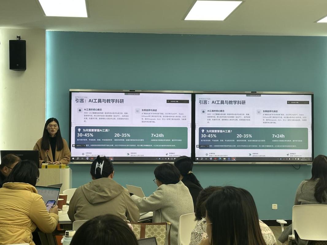在專題分享環(huán)節(jié),林雅珠老師以“AI工具簡單應(yīng)用分享”為題作報告。內(nèi)容從AI工具在教學(xué)科研中的趨勢與價值切入,逐步展開對主流工具的分類與適用場景分析,重點講解了提示詞優(yōu)化的五大核心技巧,并結(jié)合教學(xué)實例進(jìn)行逐步解析。最后通過實時操作,現(xiàn)場演示了AI在課程備課、資源生成與科研輔助中的實際應(yīng)用,為與會教師將AI融入日常教學(xué)提供了清晰的方法路徑與可遷移的操作范式。