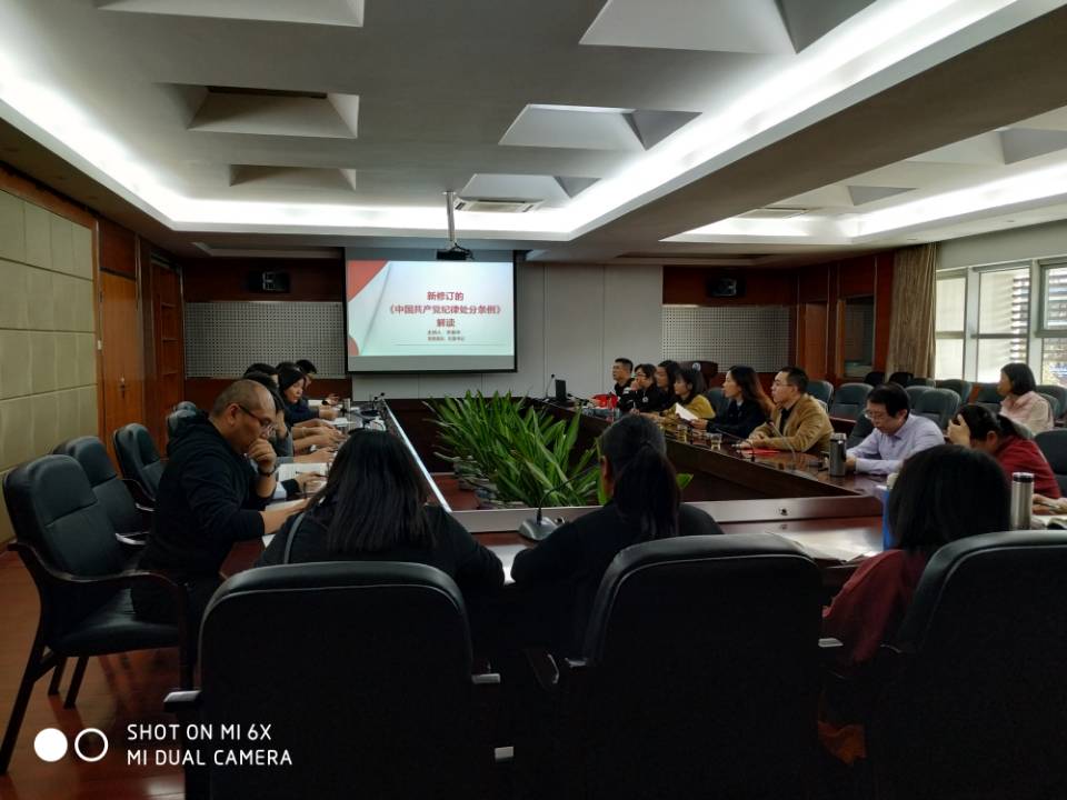 紀(jì)委書(shū)記李美華從《中國(guó)共產(chǎn)黨紀(jì)律處分條例》修訂的背景、修訂的內(nèi)容條款以及如何貫徹落實(shí)《條例》三個(gè)方面作了專題輔導(dǎo)報(bào)告。李美華指出,新修訂的《中國(guó)共產(chǎn)黨紀(jì)律處分條例》,是黨中央站在新的歷史起點(diǎn)上,全面貫徹習(xí)近平新時(shí)代中國(guó)特色社會(huì)主義思想和黨的十九大精神的具體舉措,是落實(shí)新時(shí)代黨的建設(shè)總要求和全面從嚴(yán)治黨戰(zhàn)略部署,對(duì)堅(jiān)持和加強(qiáng)黨的全面領(lǐng)導(dǎo)、黨的紀(jì)律建設(shè)作出的再部署、再動(dòng)員;是貫徹落實(shí)習(xí)近平新時(shí)代中國(guó)特色社會(huì)主義思想“兩個(gè)堅(jiān)決維護(hù)”的必然要求;是進(jìn)一步總結(jié)提煉黨的建設(shè)新實(shí)踐新經(jīng)驗(yàn),對(duì)黨章和《關(guān)于新形勢(shì)下黨內(nèi)政治生活的若干準(zhǔn)則》等黨內(nèi)法規(guī)要求的細(xì)化、具體化;是針對(duì)管黨治黨存在的突出問(wèn)題扎緊籠子,實(shí)現(xiàn)制度與時(shí)俱進(jìn),適應(yīng)紀(jì)檢監(jiān)察體制改革,實(shí)現(xiàn)紀(jì)法貫通,推動(dòng)全面從嚴(yán)治黨向縱深發(fā)展的治本之舉。通過(guò)學(xué)習(xí),大家一致表示,要深入學(xué)習(xí)貫徹執(zhí)行《中國(guó)共產(chǎn)黨紀(jì)律處分條例》,堅(jiān)持問(wèn)題導(dǎo)向,加強(qiáng)紀(jì)律學(xué)習(xí)教育、強(qiáng)化紀(jì)律意識(shí)。