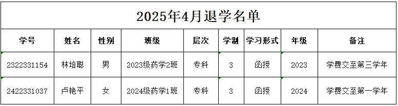 林培聰、盧艷平等2名學(xué)生因個(gè)人原因(公司有事,不方便離開,無法繼續(xù)來校參加面授等原因)自愿申請(qǐng)退學(xué),并根據(jù)學(xué)校要求辦理退學(xué)手續(xù)。