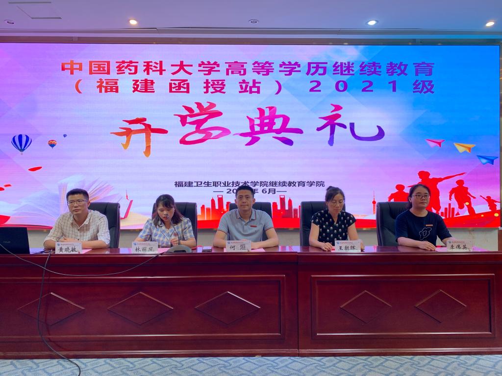6月27日下午,中國藥科大學(xué)福建函授站2021級新生開學(xué)典禮在我校隆重舉行,繼續(xù)教育學(xué)院副院長何烜、中國藥科大學(xué)理學(xué)院王朝暉副教授、2021級新生班主任黃曉敏老師,繼續(xù)教育學(xué)院李偉英、王皎葳,2021級全體函授新生參加了開學(xué)典禮,會議由繼續(xù)教育學(xué)院函授科科長林麗鳳主持。