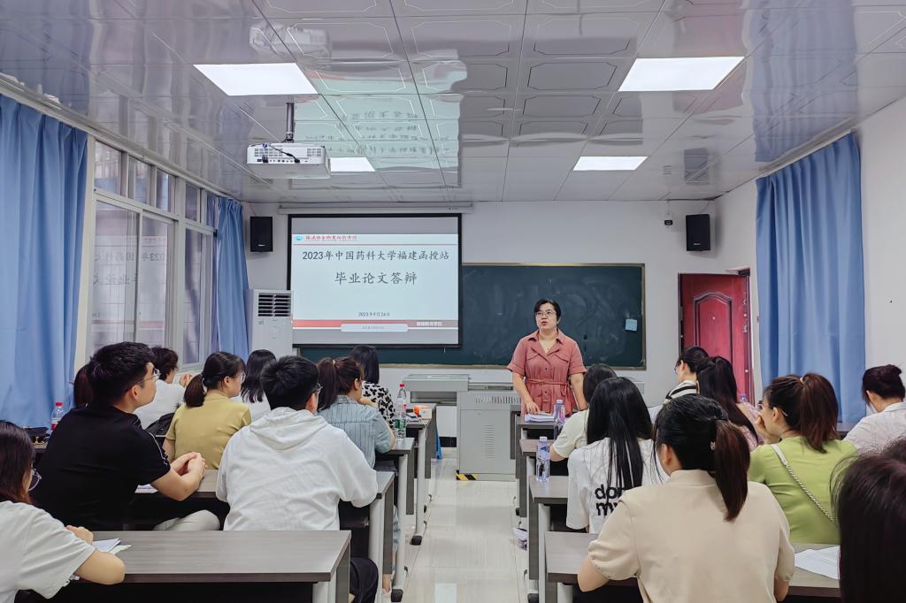 此次答辯嚴格執(zhí)行《中國藥科大學高等學歷繼續(xù)教育本科畢業(yè)論文(設(shè)計)管理規(guī)定》中的相關(guān)要求。答辯分為學生個人陳述和教師提問兩個環(huán)節(jié)。各組學生按照順序依次闡述自己的論文選題、研究框架、創(chuàng)新點、研究結(jié)論等內(nèi)容。答辯評審針對論文內(nèi)容提出相關(guān)問題,學生現(xiàn)場回答,以此考查學生對論文的論證合理性及對專業(yè)知識的掌握程度。