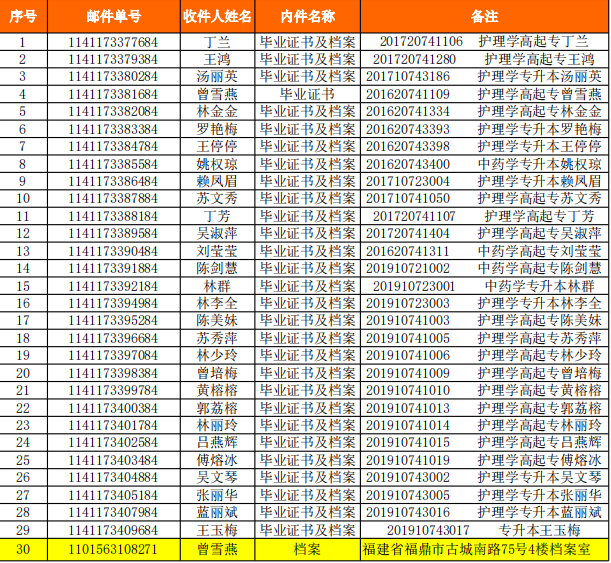 截止2021年9月27日,北京中醫(yī)藥大學網(wǎng)絡教育2021年第三批畢業(yè)生證書和檔案郵寄信息已經(jīng)核對登記完畢并全部用EMS寄出,具體EMS單號詳見附件1,請相關(guān)學生注意查收。現(xiàn)將相關(guān)注意事項通知如下: