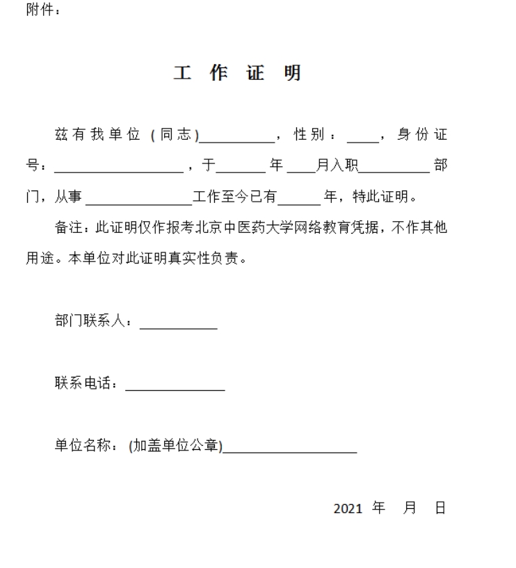 ①網(wǎng)上打印的報名表(須單位蓋章簽字、學(xué)生簽字)、工作證明(見附件,須單位蓋章)各1份;