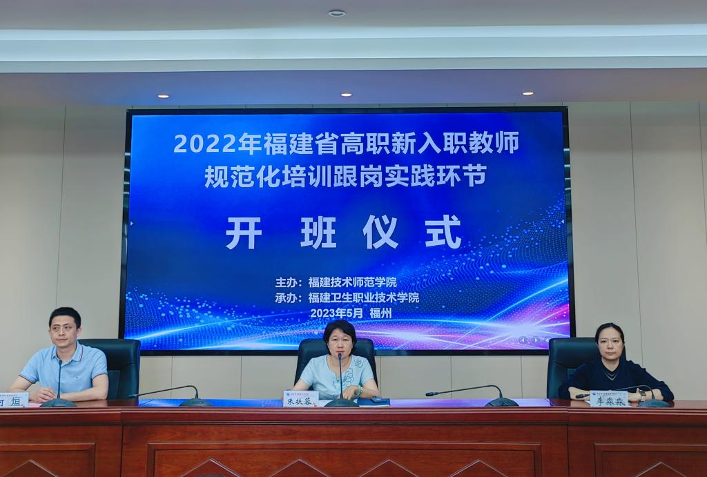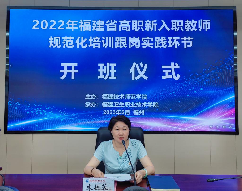 為做好我省2022年度職業(yè)院校教師素質(zhì)提高計(jì)劃中高職新入職教師規(guī)范化培訓(xùn),受福建技術(shù)師范學(xué)院委托,由我校承辦的高職新入職教師規(guī)范化培訓(xùn)跟崗實(shí)踐環(huán)節(jié)(醫(yī)藥衛(wèi)生類)開(kāi)班儀式于5月22日在行政樓六樓會(huì)議室召開(kāi)。副校長(zhǎng)朱扶蓉,教務(wù)處以及各學(xué)院(系、部)相關(guān)負(fù)責(zé)人,跟崗實(shí)踐導(dǎo)師和14名新入職教師參加開(kāi)班儀式。開(kāi)班儀式由繼續(xù)教育學(xué)院副院長(zhǎng)何烜主持。