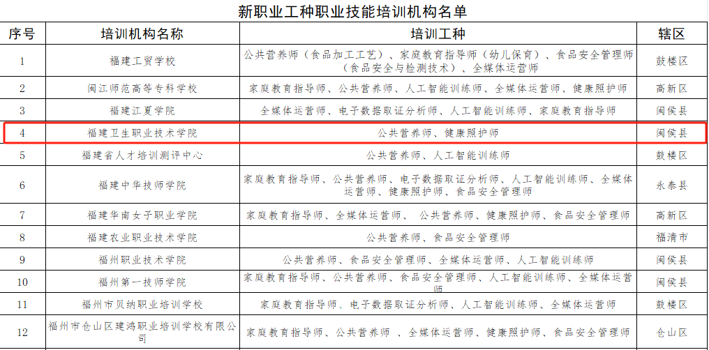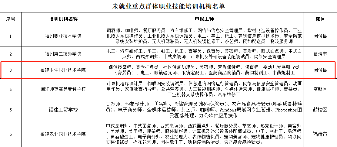 近日,根據(jù)《福州市人力資源和社會保障局關(guān)于遴選補(bǔ)貼性職業(yè)技能培訓(xùn)機(jī)構(gòu)的通知》,經(jīng)閩侯縣人社局推薦,市人社局專家評審,我校憑借優(yōu)質(zhì)的教育資源和專業(yè)的培訓(xùn)能力,入選福州市新職業(yè)工種和未就業(yè)重點(diǎn)群體職業(yè)技能培訓(xùn)機(jī)構(gòu),承擔(dān)養(yǎng)老護(hù)理員、保健按摩師和醫(yī)藥商品購銷員等13個(gè)工種培訓(xùn)。