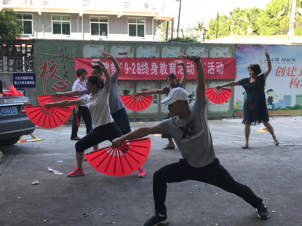 基礎(chǔ)部以“9?28終身教育活動日”為契機,開展社區(qū)功夫扇培訓(xùn)活動,吸引了很多本不愿從事體育鍛煉的居民,投身到了學(xué)習(xí)鍛煉的熱潮中,活動不僅幫助社區(qū)居民強身健體,滿足了大家求新、求知、求美的愿望,更營造全民學(xué)習(xí)、終身學(xué)習(xí)的良好氛圍。