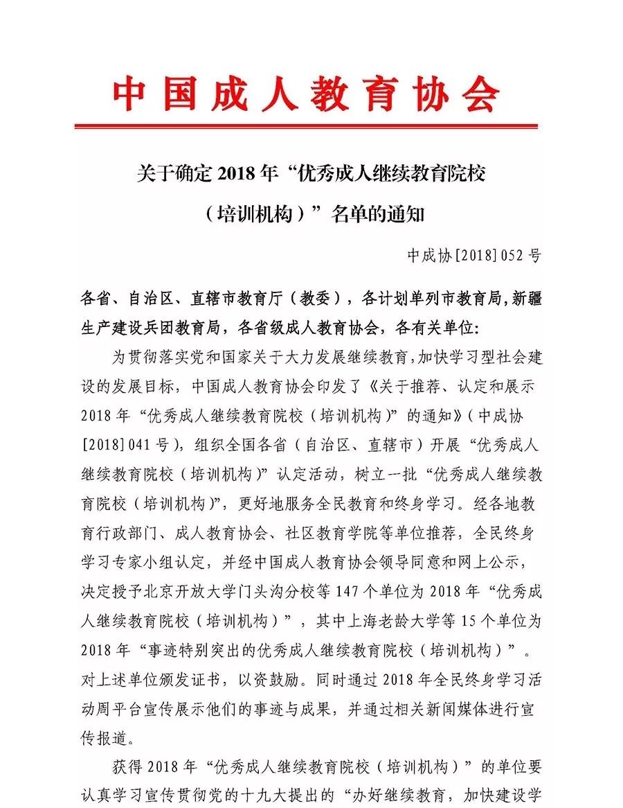 近日,中國成人教育協(xié)會發(fā)布了《關(guān)于確定2018年“優(yōu)秀成人繼續(xù)教育院校(培訓(xùn)機(jī)構(gòu))”名單的通知》(中成協(xié)〔2018〕052號),經(jīng)各地教育行政部門、成人教育協(xié)會、社區(qū)教育學(xué)院等單位推薦,全民終身學(xué)習(xí)專家小組認(rèn)定,全國147個單位被授予“優(yōu)秀成人繼續(xù)教育院校(培訓(xùn)機(jī)構(gòu))”,我院是福建省三個入選單位中唯一一所高職高專院校。