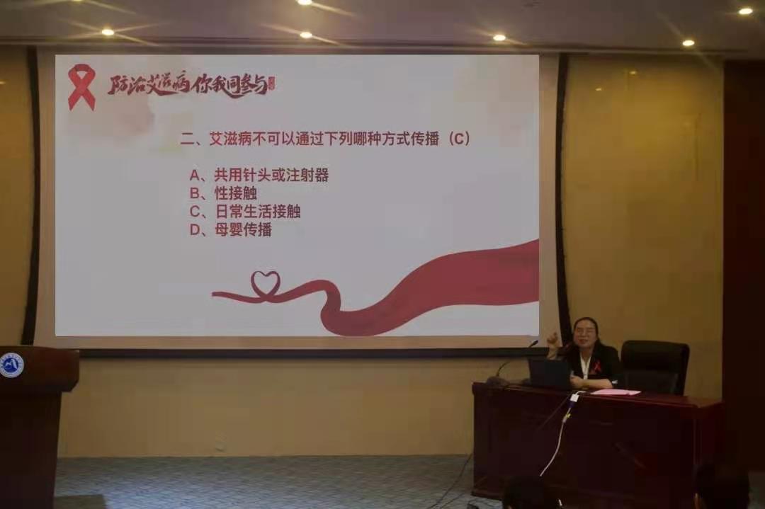 揭金花老師深入淺出地講解了艾滋病的發(fā)病機理、傳播途徑、防治措施,讓同學(xué)們深刻地了解艾滋病的嚴(yán)重危害,增強對艾滋病的認識。最后呼吁大家共同努力早日實現(xiàn)零艾滋的目標(biāo)。