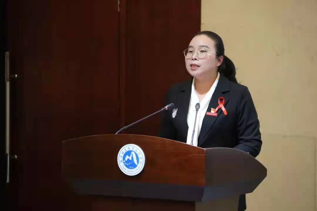 許能鋒院長主要介紹了艾滋病防治工作中的重點和難點問題,并向同學(xué)們提出三點倡議。一是唯有真自愛,方能真防艾。作為一名新時代的大學(xué)生,保持良好的生活習(xí)慣和生活作風(fēng),扎實地掌握和實踐艾滋病相關(guān)知識對自己的行為負責(zé),自尊自愛,積極正確地預(yù)防艾滋病的發(fā)生和傳播。二是唯有愛之名,無悔醫(yī)路行。作為一名醫(yī)學(xué)類院校的大學(xué)生,我們肩負著醫(yī)者仁心與使命、希望與榮光,更應(yīng)該正視艾滋,點亮反歧視之光,增強大眾防艾意識,傳播防艾知識技能,攜手防疫抗艾,遏制艾滋病的傳播。三是唯有愛之聲,絲帶以傳情。作為一名有仁愛之心的新青年,我們應(yīng)給艾滋病人以包容與善待,不要用歧視的眼光看待他們。