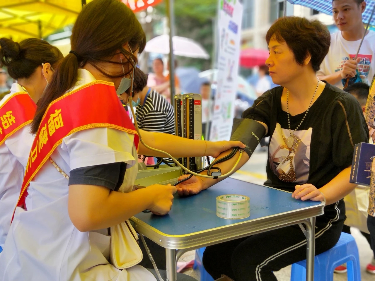 在義診點,志愿者認真給每位前來參與的居民記錄血壓測量參數,并詳細詢問居民日常測量的血壓值,掌握血壓數值變化,以便更清楚地了解他們的血壓情況,提供合適的健康宣教。針對社區(qū)居民闡述的一些身體上的不適與疑問,志愿者適時開展心腦血管疾病、糖尿病、肺結核等常見病的宣教,給予合理的飲食建議,提醒居民適當鍛煉并保持愉悅的心情,提高居民對常見病的重視度,提升健康意識。