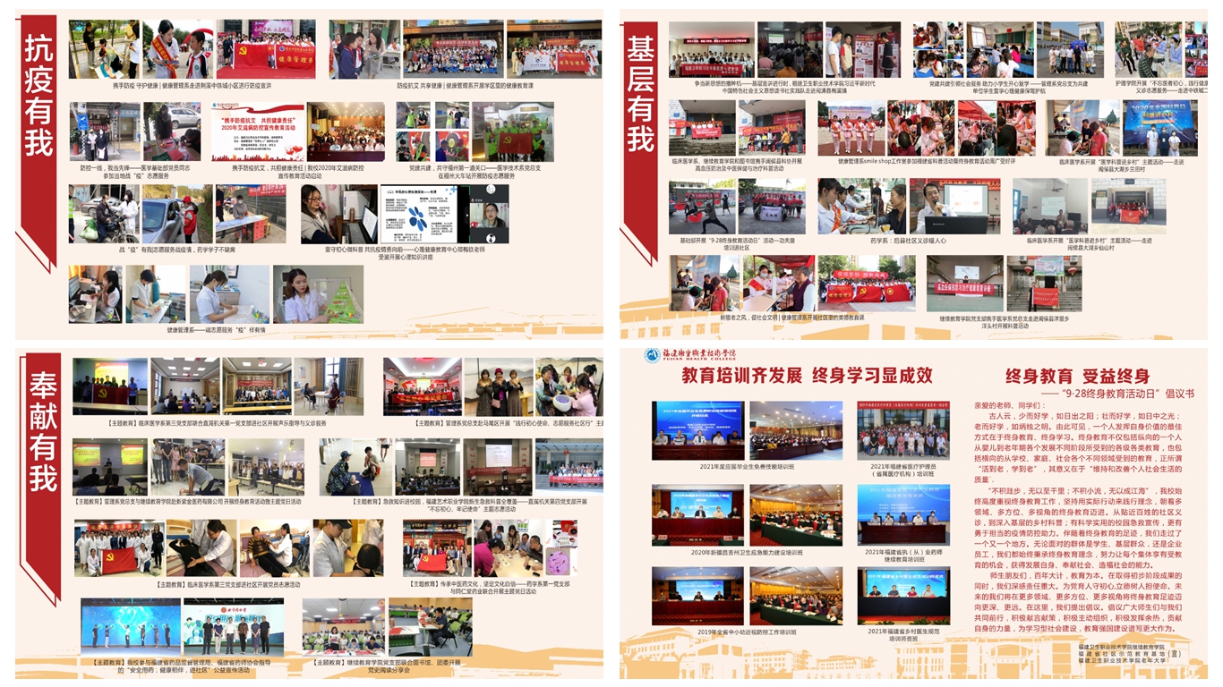 為深入貫徹落實福建省終身教育促進委員會《關(guān)于開展2021年“9·28終身教育活動日”暨全民終身學習活動周的通知》,我校圍繞“慶建黨百年華誕 譜終身學習新篇”的主題,組織開展了2021年全民終身學習活動周活動。