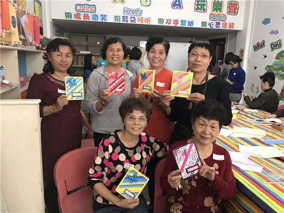婦女學員在廈門中山社區(qū)“美麗工坊”制作賀卡
