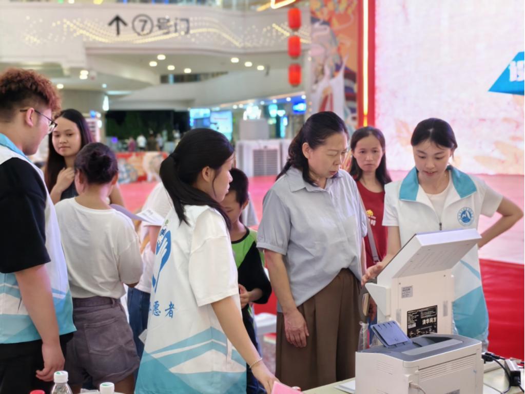 科創(chuàng)成果展示區(qū)通過(guò)科普知識(shí)展示臺(tái)與科普視頻,直觀呈現(xiàn)“十四五”健康領(lǐng)域科技創(chuàng)新成果,讓居民近距離感受新質(zhì)生產(chǎn)力帶來(lái)的健康變革。