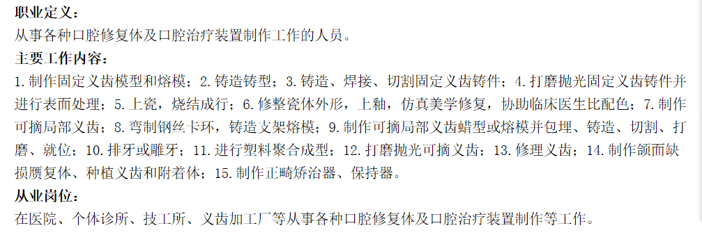 口腔修復(fù)體制作工簡介