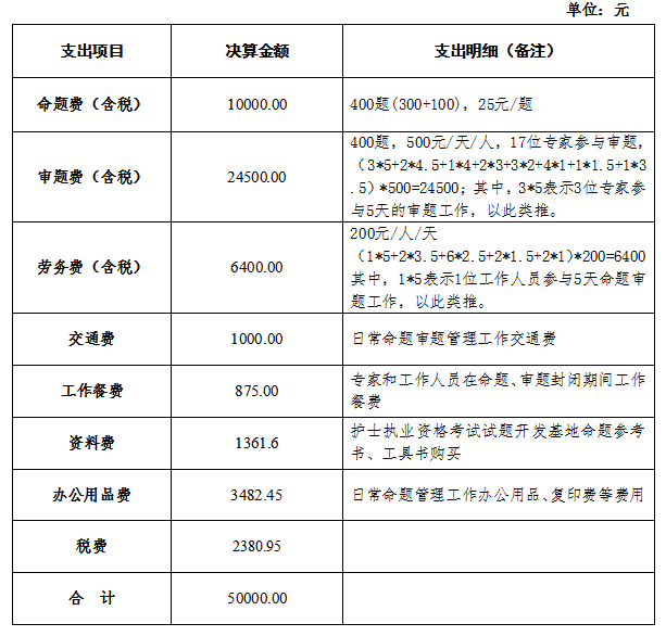 2020-2021年度護(hù)士執(zhí)業(yè)資格考試試題開發(fā)基地決算單公示