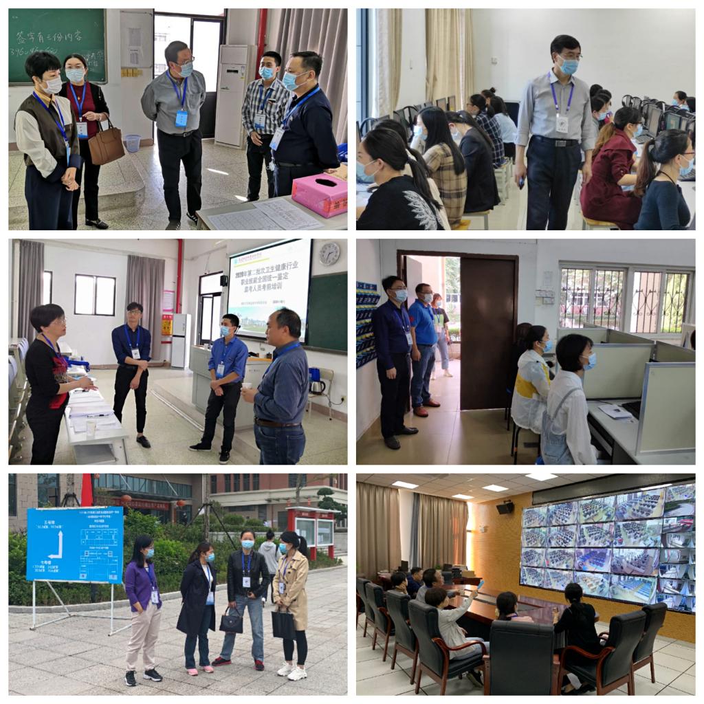 學(xué)校領(lǐng)導(dǎo)與國(guó)家、省、市衛(wèi)健委巡視員現(xiàn)場(chǎng)交流、巡查考場(chǎng)