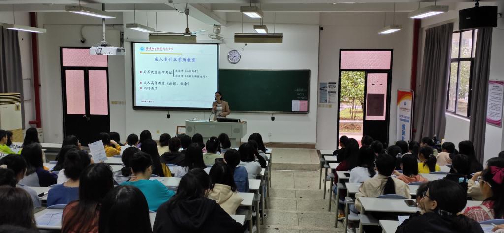 3、舉辦新生入學教育專場招生宣傳講座和主題班會,與輔導員一同走進學生,對自考本專銜接助學班的優(yōu)勢及課程安排等內(nèi)容進行宣講,進一步激發(fā)學生報考積極性。