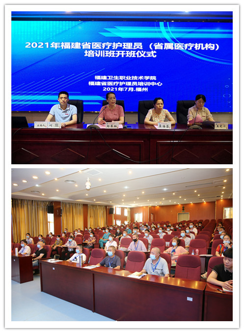 2021年7月7日下午福建省醫(yī)療護理員第一期培訓(xùn)班在福建衛(wèi)生職業(yè)技術(shù)學(xué)院實訓(xùn)樓4樓順利開班!校黨委委員、副校長鄭翠紅出席開班儀式并發(fā)表講話,護理學(xué)院院長龔海蓉、副院長王憲寧以及70余名各省屬醫(yī)療機構(gòu)醫(yī)療護理員參加開班儀式。開班儀式由繼續(xù)教育學(xué)院副院長何烜主持。