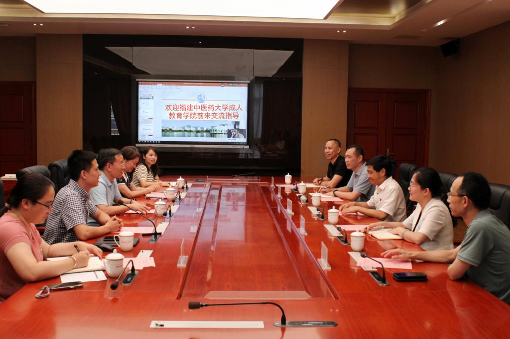 6月23日,福建中醫(yī)藥大學(xué)成人教育學(xué)院黨總支書記陳志春一行5人來校訪問交流,校長徐偉會見了來賓,并舉行座談會。雙方就高等學(xué)歷繼續(xù)教育、培訓(xùn)、技能等級認(rèn)定等方面進(jìn)行交流,并就進(jìn)一步深化合作達(dá)成共識。