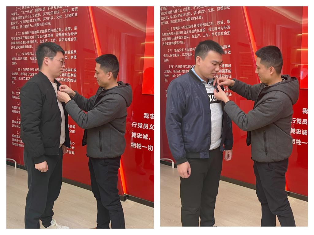 宣誓結束后,何烜為新黨員佩戴黨員徽章,對光榮加入中國共產(chǎn)黨的新黨員們表示熱烈祝賀。他指出,加入黨組織是人生新的起點、新的開始,要真正成為合格的、優(yōu)秀的共產(chǎn)黨員,還有很長的路要走。他對新黨員提出三點希望:一是希望大家筑牢思想根基,強化理論武裝,做一名真正的馬克思主義者;二是希望牢記入黨誓詞,自覺遵守黨的章程,不忘入黨初心;三是希望大家把黨員先進性目標與自己的本職工作緊密結合起來,在工作中充分發(fā)揮黨員的先鋒模范作用。