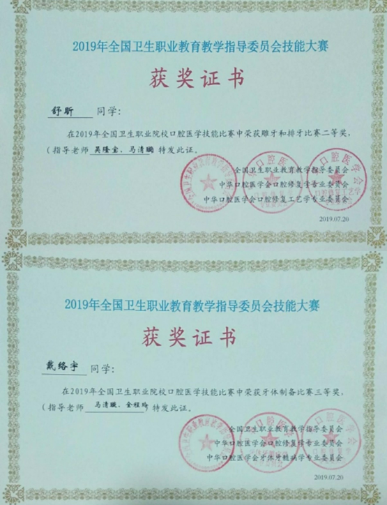 我院臨床醫(yī)學(xué)系林浩副主任帶隊(duì),攜同口腔教研室主任馬清璇老師、全程玲老師以及17級(jí)口腔醫(yī)學(xué)專業(yè)的四名選手參加了牙體制備組、雕牙和排牙組的比賽。四名選手不畏強(qiáng)敵,最終取得佳績(jī)。舒昕同學(xué)榮獲雕牙和排牙組二等獎(jiǎng),戴珞宇同學(xué)榮獲牙體制備組三等獎(jiǎng)。