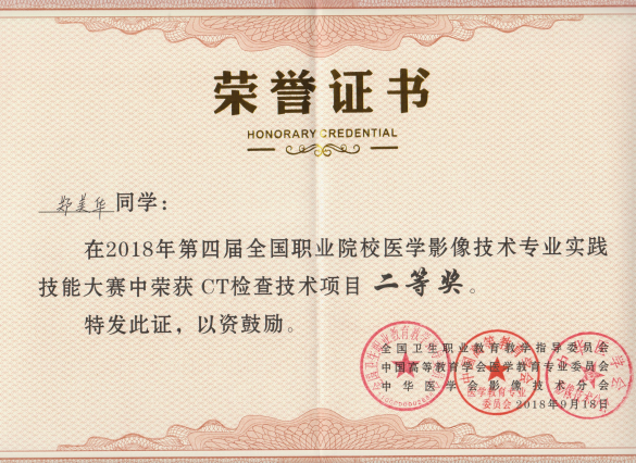 通過(guò)校內(nèi)遴選,選出2016級(jí)醫(yī)學(xué)影像技術(shù)專(zhuān)業(yè)陳燕慧、鄭美華、游雅淑和揭絲絲4位同學(xué)組隊(duì)代表學(xué)院參加比賽。經(jīng)過(guò)翁繩和、黃蘭珠、曾良成、吳清清等老師的悉心指導(dǎo),同學(xué)們?cè)谖汤K和主任領(lǐng)隊(duì)下,不畏強(qiáng)手,操作規(guī)范,取得團(tuán)體三等獎(jiǎng)。其中,鄭美華同學(xué)獲CT檢查技術(shù)單項(xiàng)二等獎(jiǎng),游雅淑同學(xué)獲醫(yī)學(xué)影像診斷單項(xiàng)三等獎(jiǎng),揭絲絲同學(xué)獲超聲檢查技術(shù)單項(xiàng)三等獎(jiǎng)。
