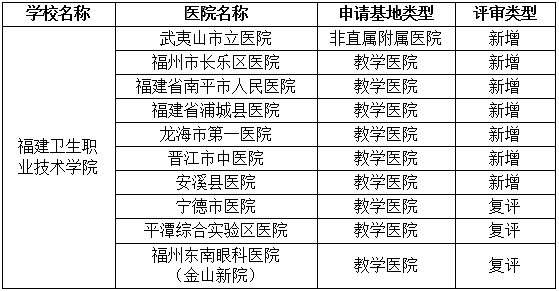 福建省衛(wèi)健委、福建省教育廳認(rèn)定公布學(xué)院10 家臨床教學(xué)基地一覽表