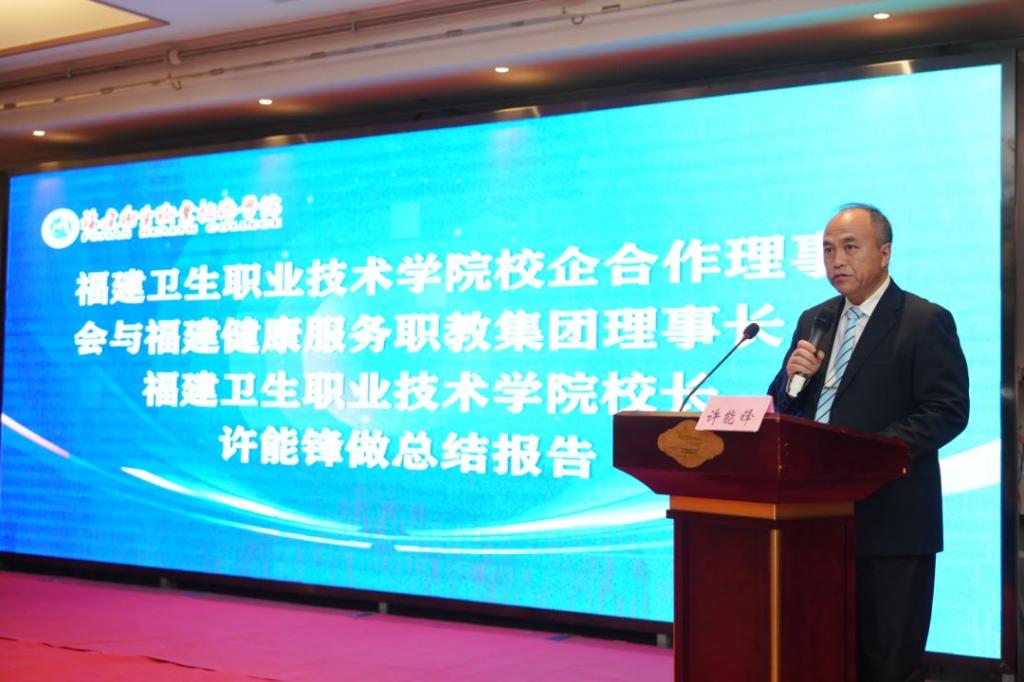會議最后,我校校長許能鋒作總結(jié)發(fā)言。他希望集團成員們攜手努力,一是加強資源共享,切實提升人才培養(yǎng)成效;二是深化產(chǎn)教融合,服務衛(wèi)生健康產(chǎn)業(yè)發(fā)展;三是打造平臺,探索衛(wèi)生健康職教特色之路,共同走出、走好一條具有福建特色的醫(yī)藥衛(wèi)生健康職業(yè)教育高質(zhì)量發(fā)展之路。