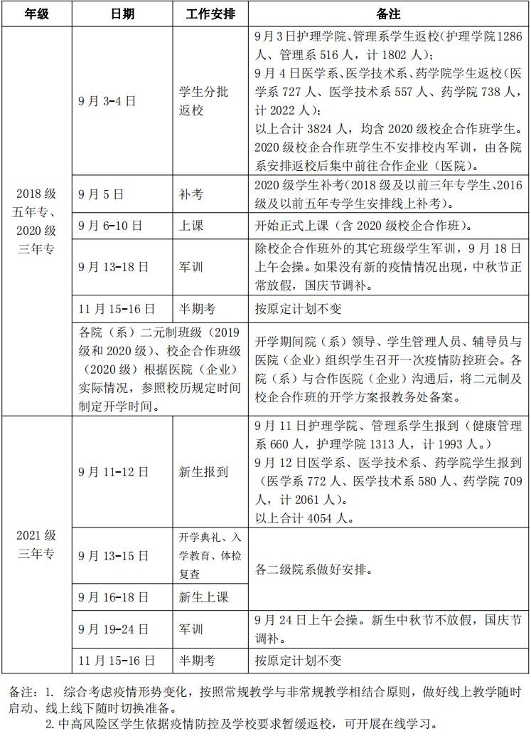 根據(jù)疫情現(xiàn)狀及學校工作安排,2021年秋季學期開學教學相關工作安排作如下調整: