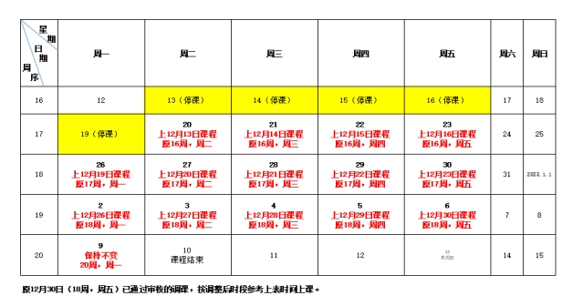 一、12月13日—19日停課,12月20日—1月9日開展線上教學完成本學期教學任務: