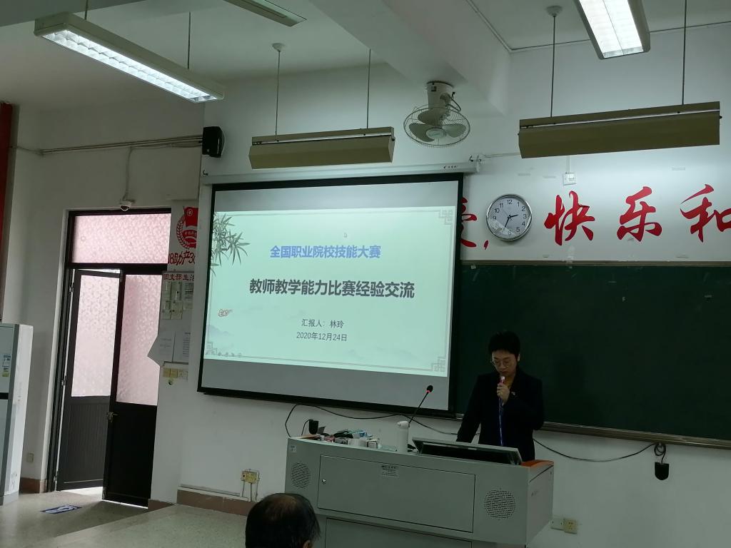 為積極總結(jié)和推廣參賽經(jīng)驗(yàn),進(jìn)一步提升教師教學(xué)能力和信息化教學(xué)水平,12月24日下午,由教務(wù)處組織舉辦 “2020年全國(guó)職業(yè)院校教學(xué)能力大賽經(jīng)驗(yàn)分享交流會(huì)”,會(huì)議組織2020年全國(guó)職業(yè)院校技能大賽教學(xué)能力比賽兩個(gè)獲獎(jiǎng)團(tuán)隊(duì)的全體成員為學(xué)校教師做經(jīng)驗(yàn)交流,這也是學(xué)校教師發(fā)展中心成立后一項(xiàng)重要活動(dòng),院長(zhǎng)許能鋒、教務(wù)處、質(zhì)控辦及全校教師參加了交流會(huì)。交流會(huì)由教務(wù)處朱扶蓉處長(zhǎng)主持。