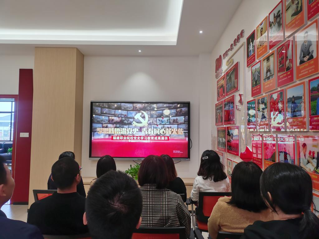 為深入學(xué)習(xí)習(xí)近平總書記關(guān)于黨史學(xué)習(xí)教育的重要講話和指示精神,堅持不懈用習(xí)近平新時代中國特色社會主義思想鑄魂育人,11月17日,教務(wù)處、實習(xí)實訓(xùn)中心支部全體黨員在行政樓五樓黨員活動室集中觀看福建省職業(yè)院校黨史學(xué)習(xí)教育成果展。