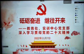 11月7日,教務(wù)處、實(shí)習(xí)實(shí)訓(xùn)中心黨支部召開支部會(huì)議傳達(dá)學(xué)習(xí)黨的二十大精神。會(huì)議在黨員活動(dòng)室進(jìn)行,受疫情影響,部分居家辦公的黨員同志通過連線與校內(nèi)黨員共同參加了會(huì)議。會(huì)議由黨支部書記李淼淼主持。
